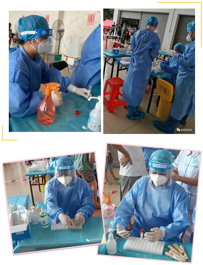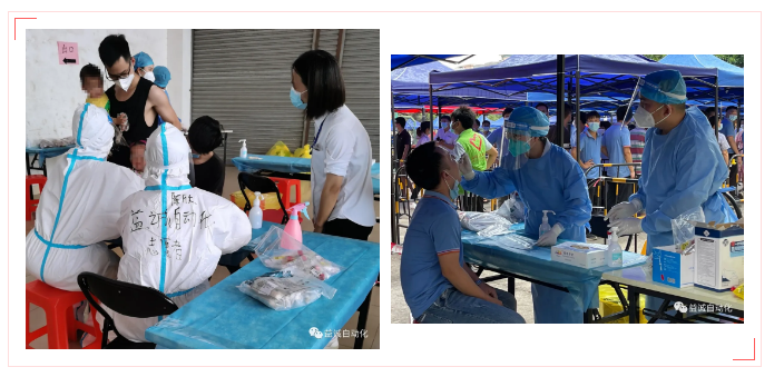 当日,东莞天气骄阳似火、烈日炎炎,室外气温高达三十多度。九州酷游五名志愿员分两批轮班,投身抗疫一线。他们快速学习了工作要求,迅速上岗,承担了医护人员采样辅助、封瓶、包装检测试管等工作。